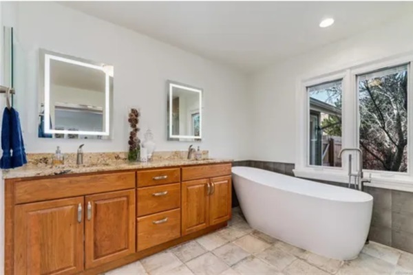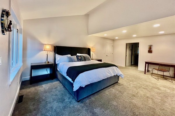 - Primary suite featuring vaulted ceilings and a spa-like bathroom.